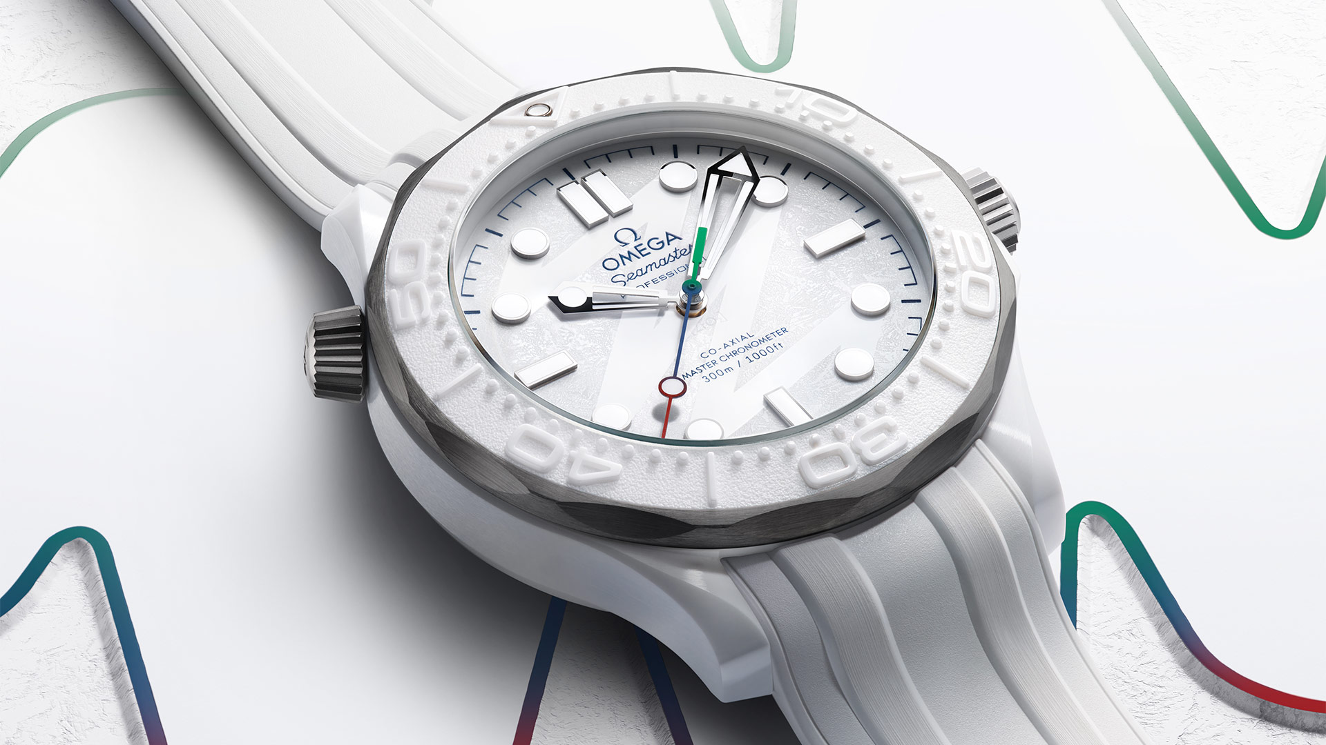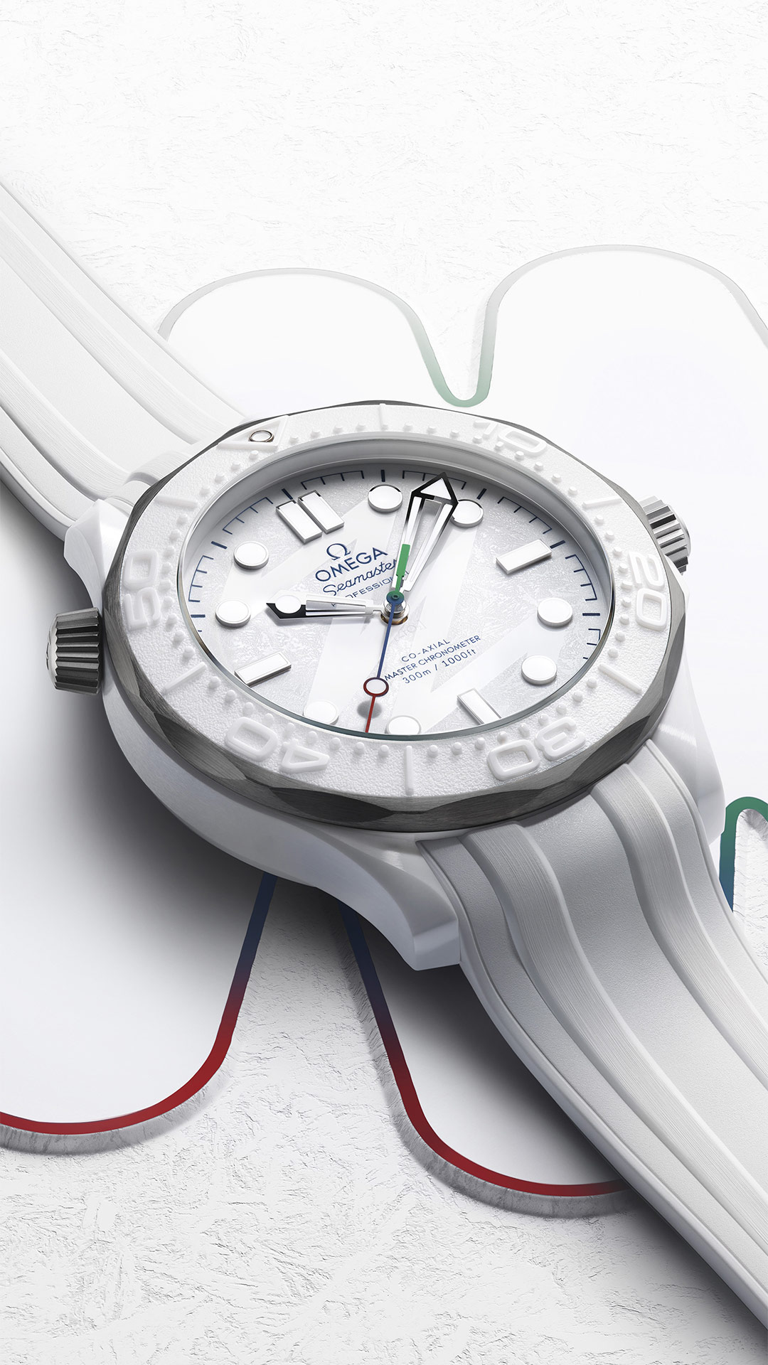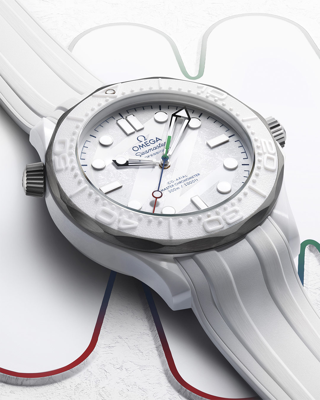 - "Milano Cortina 2026"特别版腕表新品- 海马系列 300米潜<span class="nowrap">水表</span> 43.5毫米, 白色陶瓷-钛金属表壳 搭配 橡胶表带 - 522.92.44.20.04.001