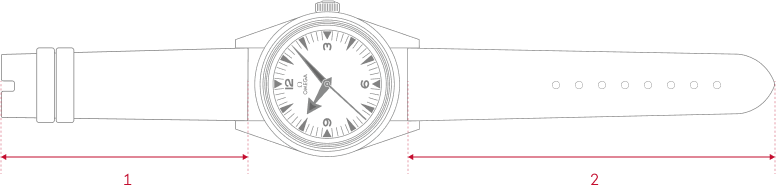 表带长度(毫米):(1) 12点位一侧的表带长度 / (2) 6点位一侧的表带长度