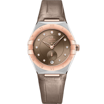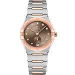 这款腕表搭配星座系列标志性的一体式表链及蝴蝶表扣,佩戴舒适。腕表内部搭载欧米茄8803至臻天文台机芯,透过防反光耐磨损的拱形蓝宝石玻璃表背,机芯的运转美态清晰可见。