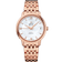 此系列表款风格简约,外观雅致华美,彰显着引人瞩目的隽永美感。此款腕表采用银色同心圆表盘,6、9及12时位置饰有钻石小时刻度及金质罗马数字小时刻度。