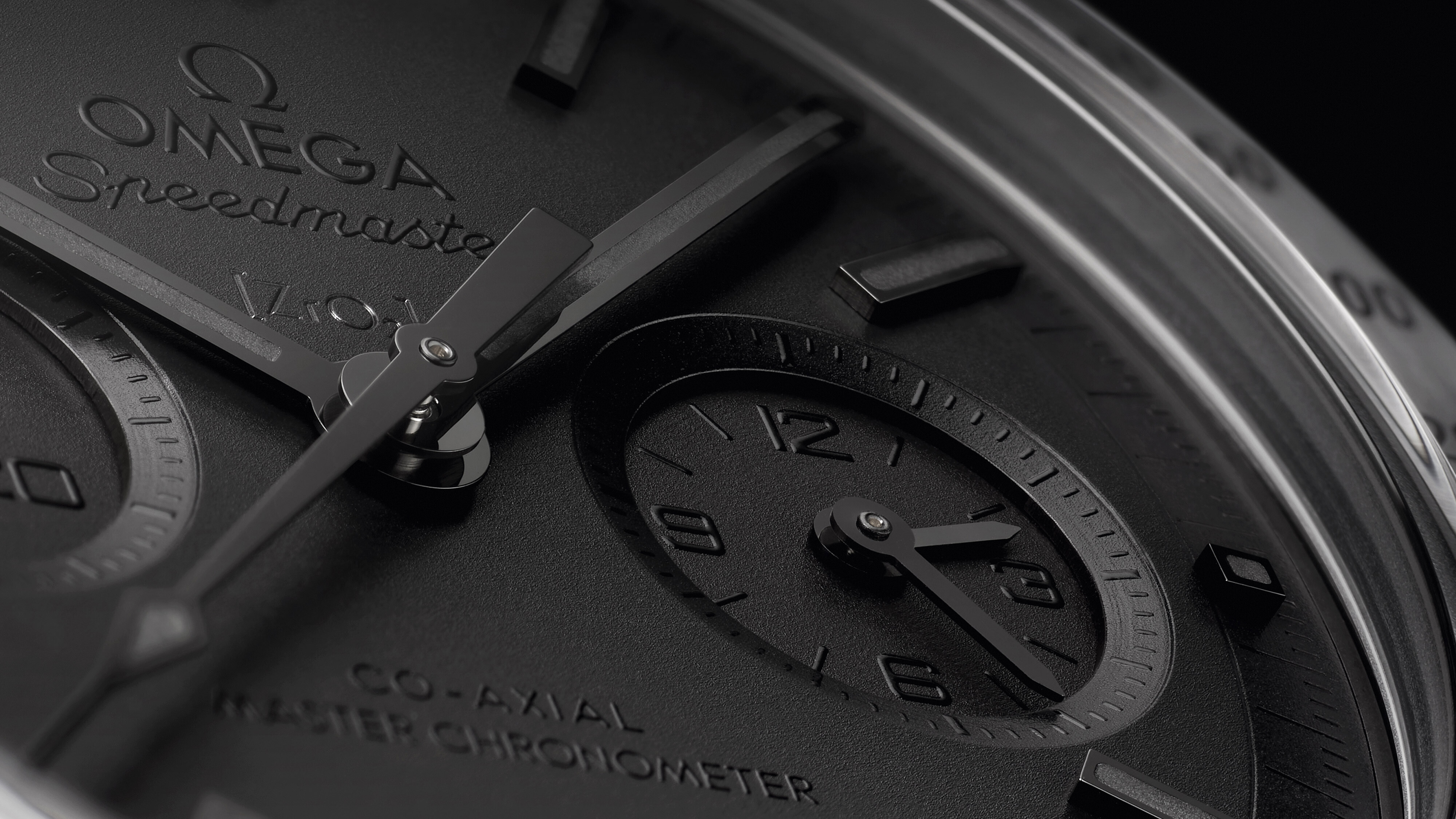 透过表背可清晰观赏到欧米茄9900自动上链至臻天文台机芯的精妙构造。该机芯经过特殊修饰,搭配经过哑光黑化处理的摆陀和夹板,以及覆以黑色亮漆的镌刻文字。腕表搭配黑色橡胶表带,表带内侧饰有月球表面图案,并配备带有瓷化钛金属弹簧折叠装置的陶瓷折叠表扣。